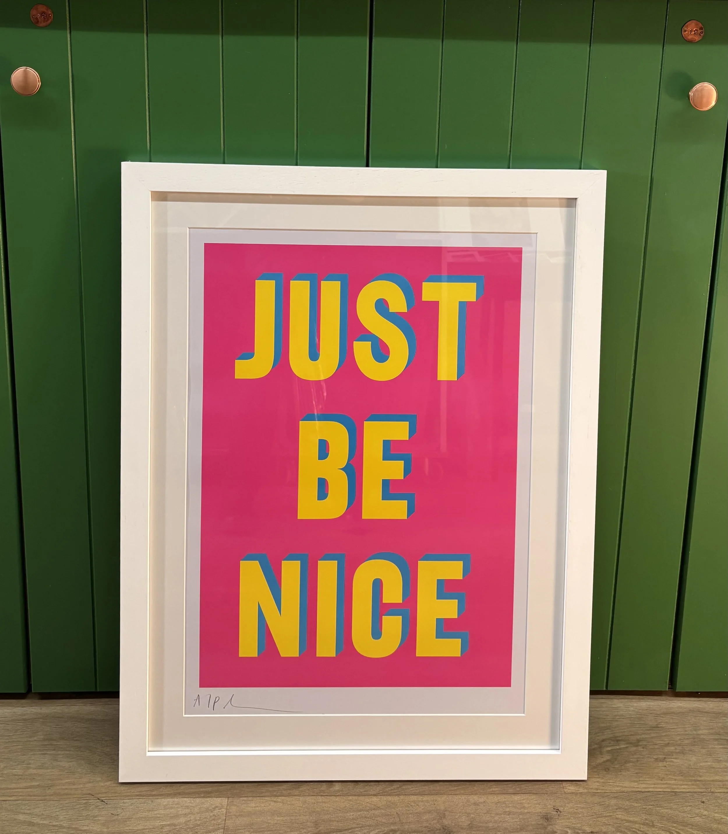 “Just Be Nice” by Dave Buonaguidi (Real Hackney Dave) – a unique, signed Artists-proof screenprint, beautifully framed by us.