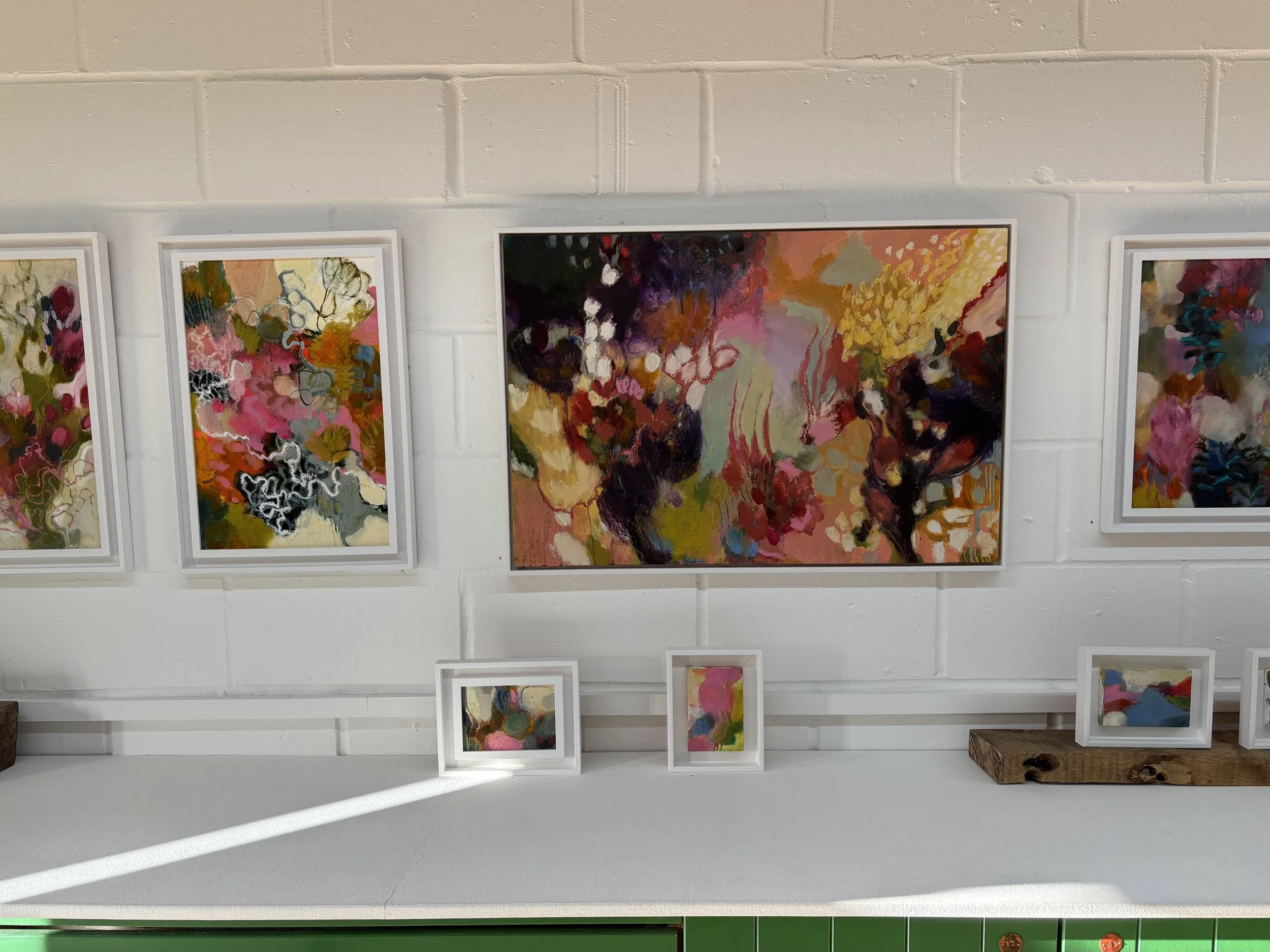 We’re really happy to be hosting Liz Meier and her beautiful abstract garden paintings here at the gallery. Her work is inspired by time spent in gardens, taking in the colors, textures, and quiet moments that happen there, and turning them into colourful, expressive paintings. In this interview, we sit down with her to talk about where these works began, what keeps her coming back to gardens for inspiration, and what it’s been like bringing this exhibition together.